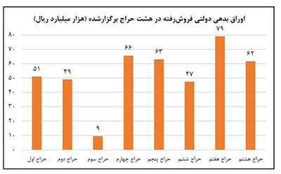 با توجه به اجتنابناپذیری کسری بودجه دولت متاثر از کاهش درآمدهای نفتی و عدم امکان افزایش فشار مالیاتی و همچنین رفع پیامدهای رکودی شیوع کرونا و با توجه به اینکه در کوتاه مدت به دلیل نسبت پایین بدهی دولت به تولید ناخالص داخلی و حتی عدم افزایش نسبت کسری بودجه بدون نفت به تولید ناخالص داخلی و لذا عدم نگرانی از ناپایداری مالی دولت، بانک مرکزی با پذیرش عاملیت فروش اوراق بدهی دولتی، تا پایان تیرماه سال جاری هشت مرحله حراج برگزار کرده و مجموعاً معادل 426 هزار میلیارد ریال انواع اوراق بدهی دولتی به فروش رسانده است .