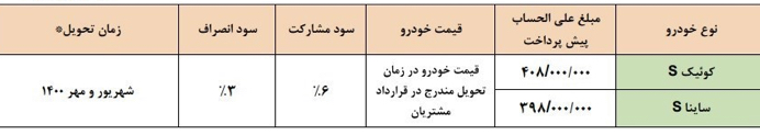 پیش فروش مشارکت در تولید محصولات سایپا در راستای ایجاد امکان فرصت برابر ثبت نام برای همه متقاضیان خرید خودرو، ایجاد سازو کار شناسایی و عرضه به مصرف کنندگان واقعی از 25 مردادماه آغاز خواهد شد. در این طرح متقاضیان از ساعت 10 صبح روز شنبه مورخ 99/05/25 (به مدت 3 روز) می توانند به صورت شبانه روزی با ورود به سایت فروش اینترنتی محصولات سایپا پس از ثبت اطلاعات شخصی و دریافت کد کاربری و رمز عبور اخذ شده از سایت ، نسبت به ثبت نام و انتخاب نوع خودرو اقدام کنند .