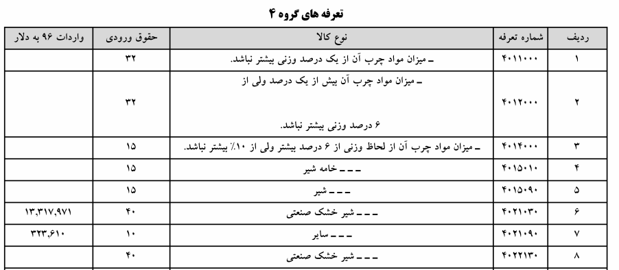 لیست منتشره از سوی گمرک، واردات شیر خشک صنعتی به چشم میخورد این در حالی