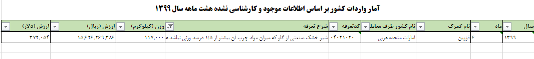 اخیرا گمرک ایران آمار واردات ۸ ماه نخست امسال را در پرتال