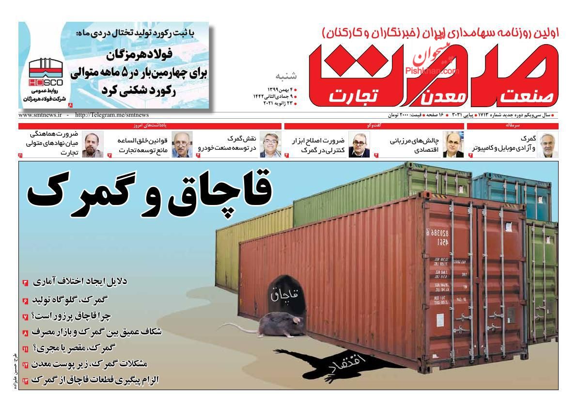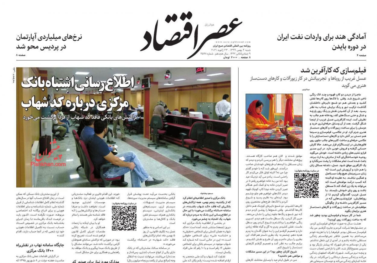 عناوین روزنامه های اقتصادی شنبه 4 بهمن ماه 99