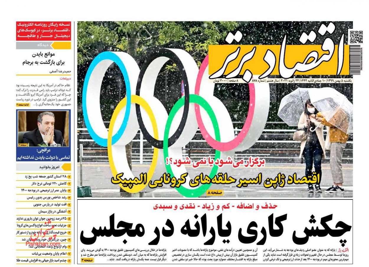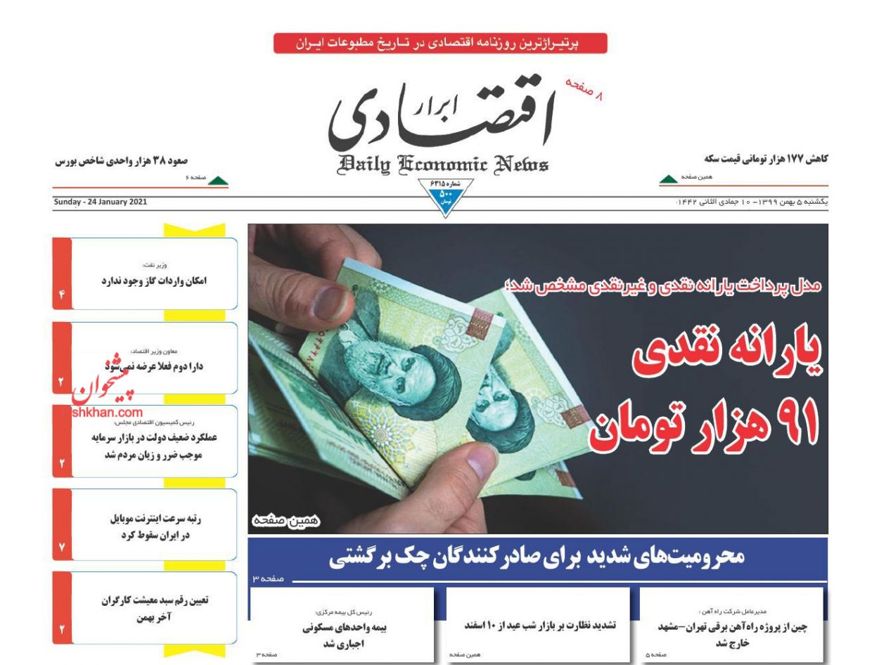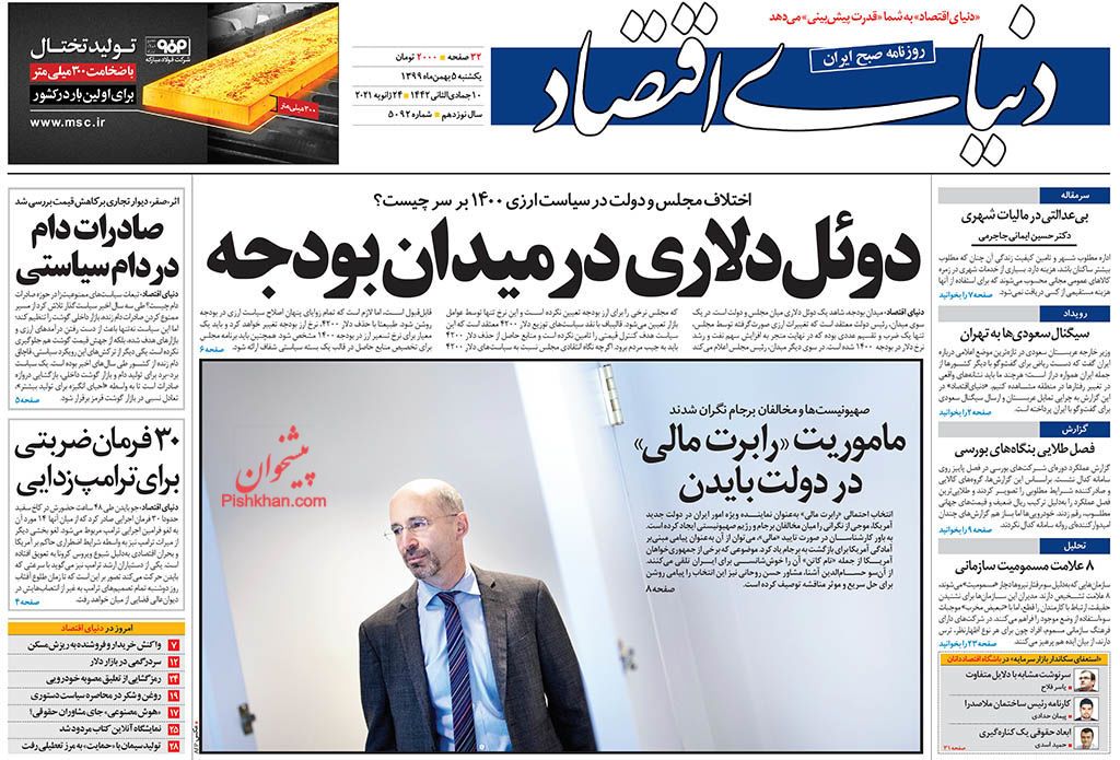 صفحه نخست روزنامههای اقتصادی امروز یکشنبه ۵ بهمن ۹۹ را در خبر اقتصادی دنبال کنید.
