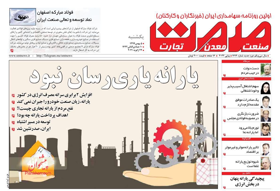 صفحه اول روزنامه های اقتصادی 5 دی