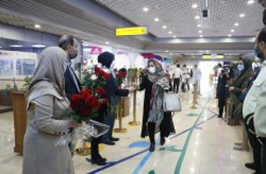 کیش و اهدای گل به مسافران یکی از پروازهای ورودی ، این روز بزرگ ملی