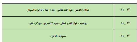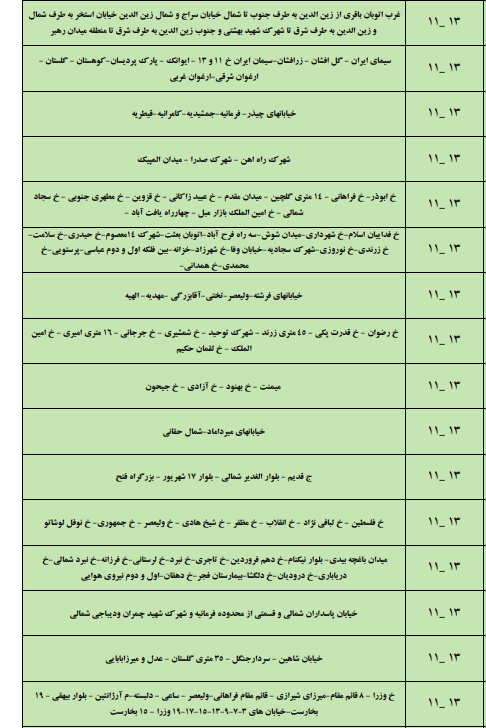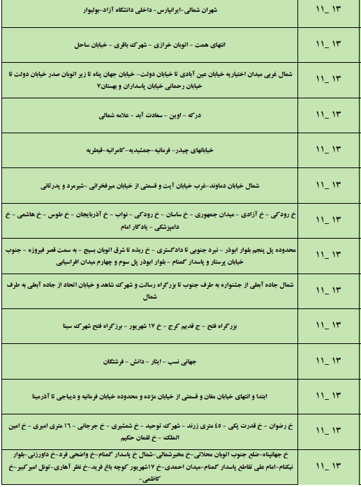 براین اساس شرکت توانیر جداول خاموشی شهر تهران را برای امروز دوم خرداد