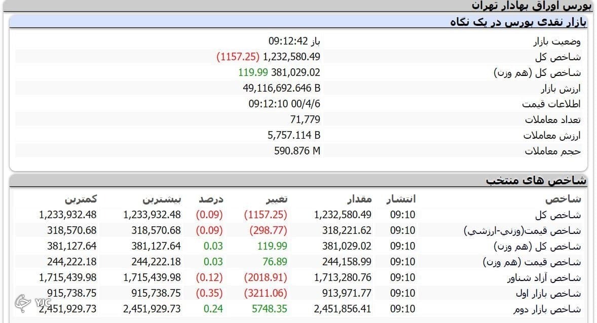 شاخص کل بورس تهران در ارتفاع یک میلیون و ۲۳۲ هزار واحد قرار گرفته است.
