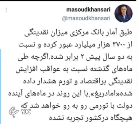 داد و اعلام کرد: با توجه به عبور نقدینگی از ۳۷۰۰ هزار میلیارد تومان