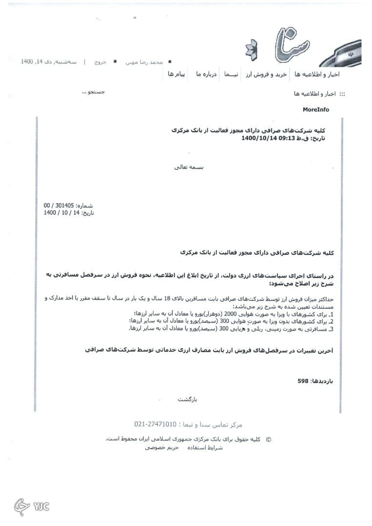 با توجه به انتشار خبری مبنی بر کاهش سهمیه ارز مسافرتی در بخشنامه